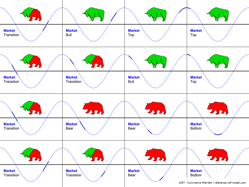 A bull market is when the economy is doing well and stocks are rising, while the bear market is when the economy is struggling and stocks are falling.