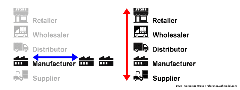 A corporate group refers to a collection of companies that are owned and controlled by a single parent company. Vertical integration involves owning companies in the same supply chain, while horizontal integration involves owning companies in the same industry.