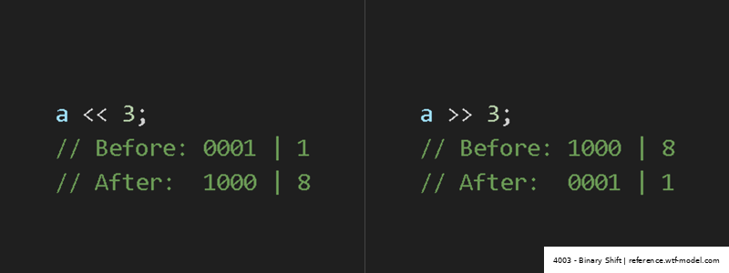 4003 - Binary ShiftLast Update: 26.06.2025ShareMaturityBasicScopeFlowCycleCenterRight ShiftPeripheryLeft ShiftCC-BY-NC-ND Philipp ElhausOriginalThe binary shift operator increases or decreases a number by the power of 2. WARNING: This entry is marked as experimental/in development.Please enable JavaScript to view the comments powered by Disqus.