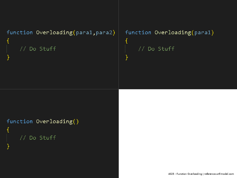Function overloading is a programming concept that allows multiple functions with the same name but different parameters. No parameter and parameter array are the two opposite extremes.